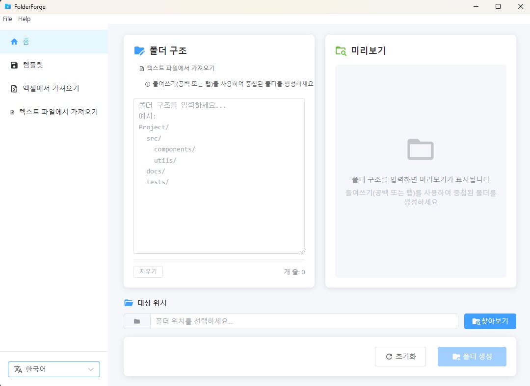 폴더를 실제로 생성하기 전에 어떤 구조로 만들어질지 트리 형태로 미리 확인할 수 있습니다. 실수를 방지하고 정확한 폴더 구조를 보장합니다.